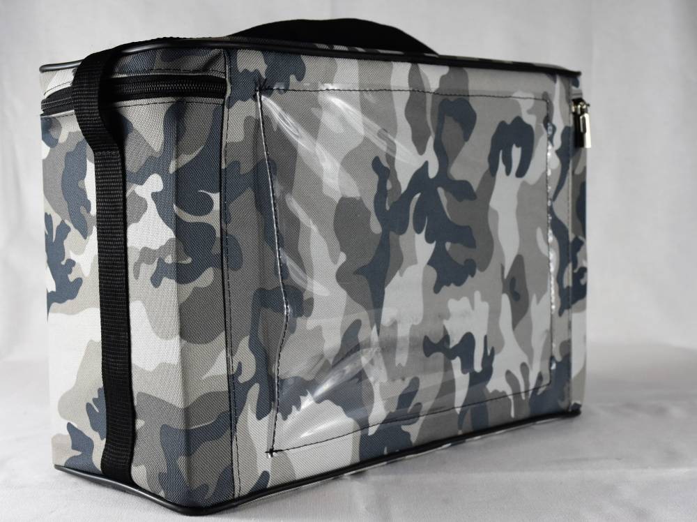 Borsa semirigida con tracolla regolabile, in nylon resistente, con tasca trasparente esterna, rivestimento interno in honeycomb con elastici ferma oggetti, chiusura a cerniera di alta qualità sigillabile.